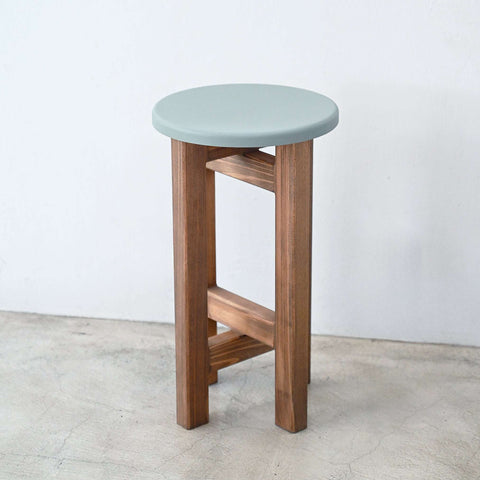 このスツールは、一般的な丸スツールよりも少し座面が小さく、「小さなスツール」と比べて低めの設計。