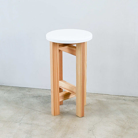 このスツールは、一般的な丸スツールよりも少し座面が小さく、「小さなスツール」と比べて低めの設計。