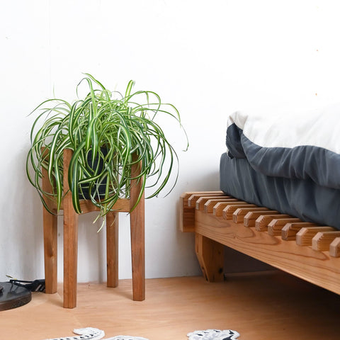 無垢材の素材感を大切に、主役の植物より主張しないようシンプルな見た目に抑えてあります。